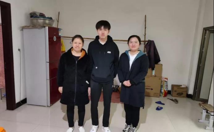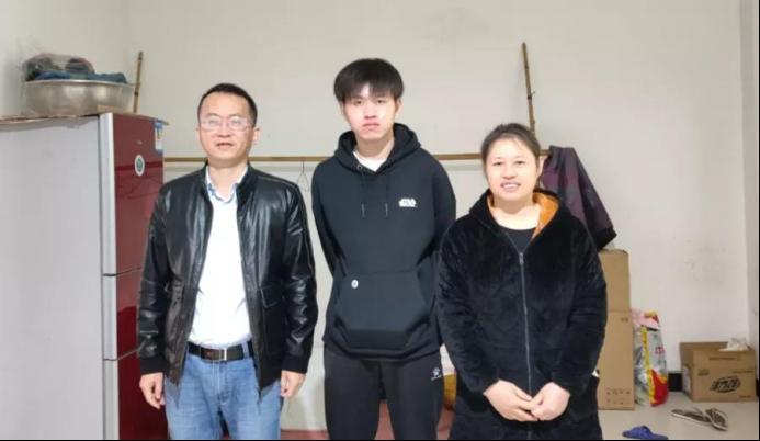 系学生科科长叶文美和辅导员洪其双来到薛绵轩家里看望慰问