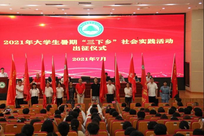 7月5日下午,学院2021年暑期“三下乡”社会实践活动出征仪式在江南校区图书馆报告厅隆重举行,院党委书记万泉为我系“扬延平荣光、传百年星火”暑期“三下乡”社会实践小分队授旗,并宣布2021年大学生暑期“三下乡”社会实践活动出征。