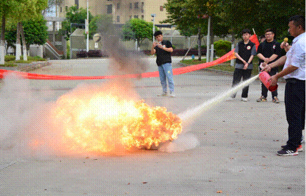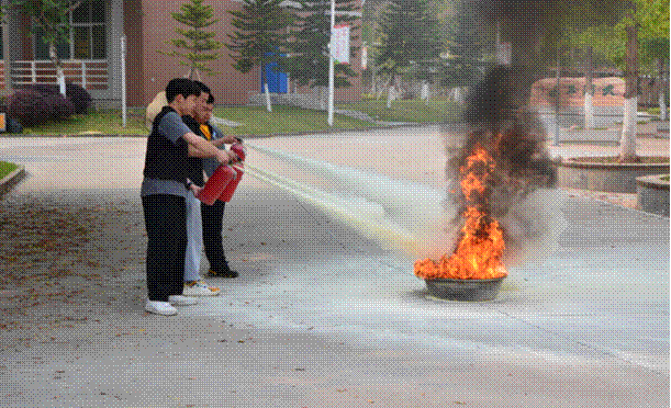 本次演练分为四个部分,第一是防火演练,由保卫处老师在认真指导灭火器的使用方法后,同学们亲自上手进行灭火操作,让大家了解了火灾发生时,应该如何正确使用灭火器,提高自救能力;
