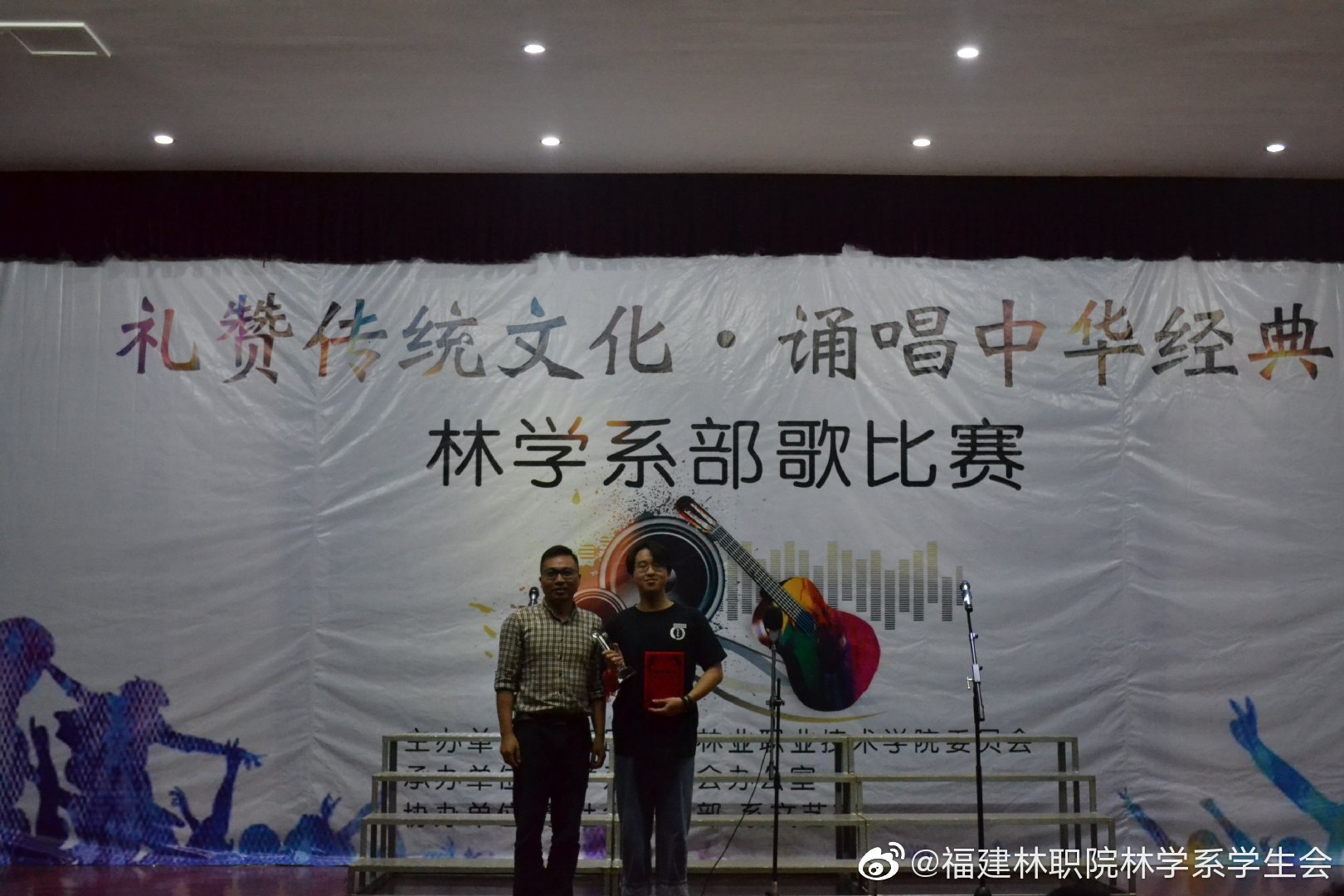 在五四青年节之际,林学系举办,“礼赞传统文化•诵唱中华经典”-部歌比赛,展现同学们青春的活力。用嘹亮的歌声展出自己对梦想的不断追求和美好憧憬,显示无限的朝气与活力,演绎出新时代大学生的精神和风采。澎湃的声音在耳边响起,经过一轮激烈的角逐,优秀奖的部门是:记者站,就业创业部,宿管部,保卫部,体育部,女生部,秘书处,办公室,志愿部,社会实践部,宣传部,新媒体。由陈明峰老师和罗勇老师颁奖。获得三等奖的部门是:学习部,纪检部。由吴慧敏老师颁奖。获得二等奖的部门是:组织部,社团部。由丁灵妍老师颁奖。最后一等奖的获得的部门是:文艺部。由徐洪书记颁奖。