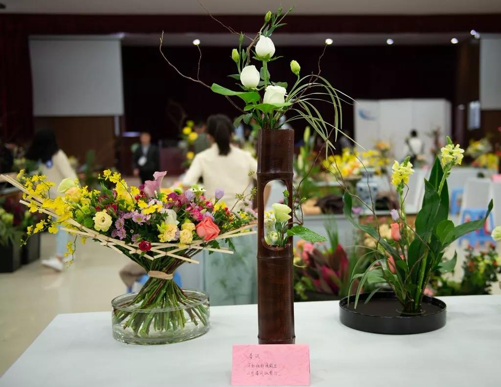 比赛现场操作有序,构思、选材、插花、修剪、装饰……选手们通过灵巧的双手和别致的构思,将散乱的花材、叶材和装饰品制作成了一件件赏心悦目的花艺作品。各位选手都表现出了自己的特色,作风风格迥异多样,或格调高雅,或清新怡人。经过参赛选手们的精心制作,一件件鲜艳夺目、创意精巧的艺术插花作品呈现出来,同时选手们就插花作品的设计理念、花卉搭配、以及蕴含的意义用小卡片作了详细的介绍,给大家带来强烈的视觉冲击和美的享受。