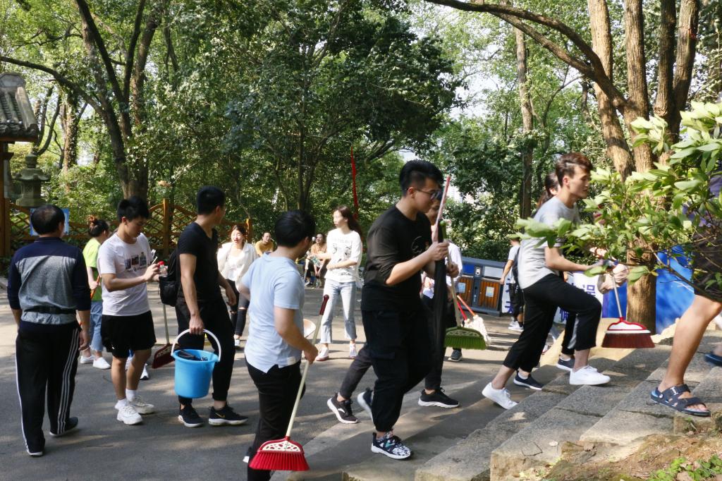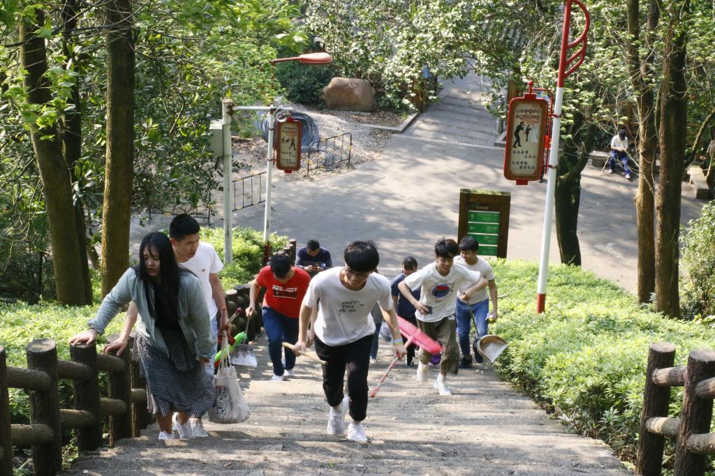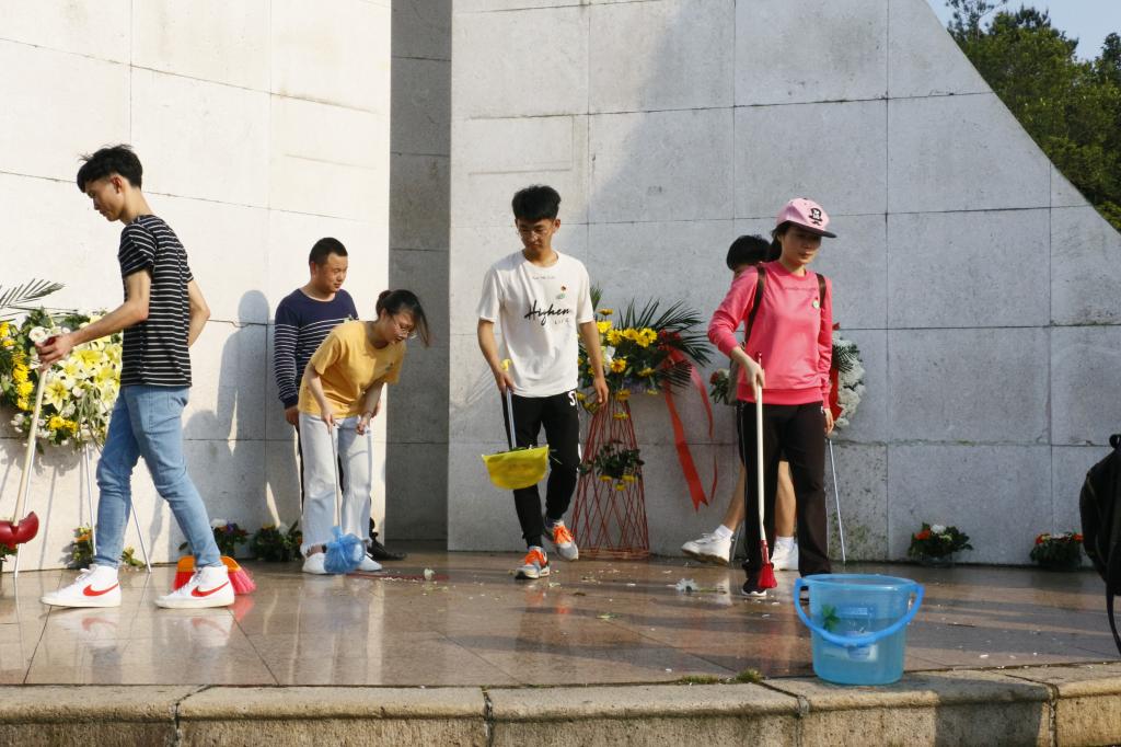 最后,三个支部党员拿起自带的卫生工具分组打扫烈士纪念碑各个角落,并且擦拭碑上的灰尘,保持纪念碑周边卫生整洁。随着活动渐渐接近尾声,学生党支部全体党员拉起党旗,在纪念碑前合影留念。