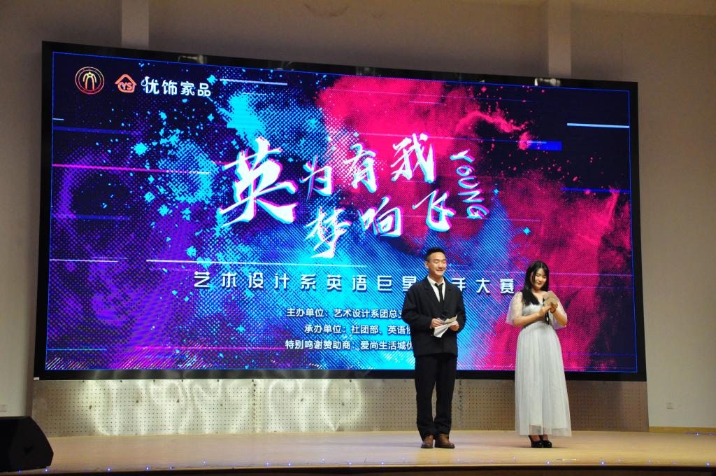 为加强专业建设,营造良好学风,丰富校园文化生活。4月18日晚7点30分,艺术设计系在天麟礼堂举办了“英为育我,梦想飞young”英语歌唱大赛。系党总支书记成榕、党政办主任杨自绍、学生科长叶章球、英语教研室主任连颖、丁磊老师和辅导员朱江老师受邀出席本次晚会。一路的披荆斩棘,共有十二名歌手突围而出决战今晚音乐盛宴。