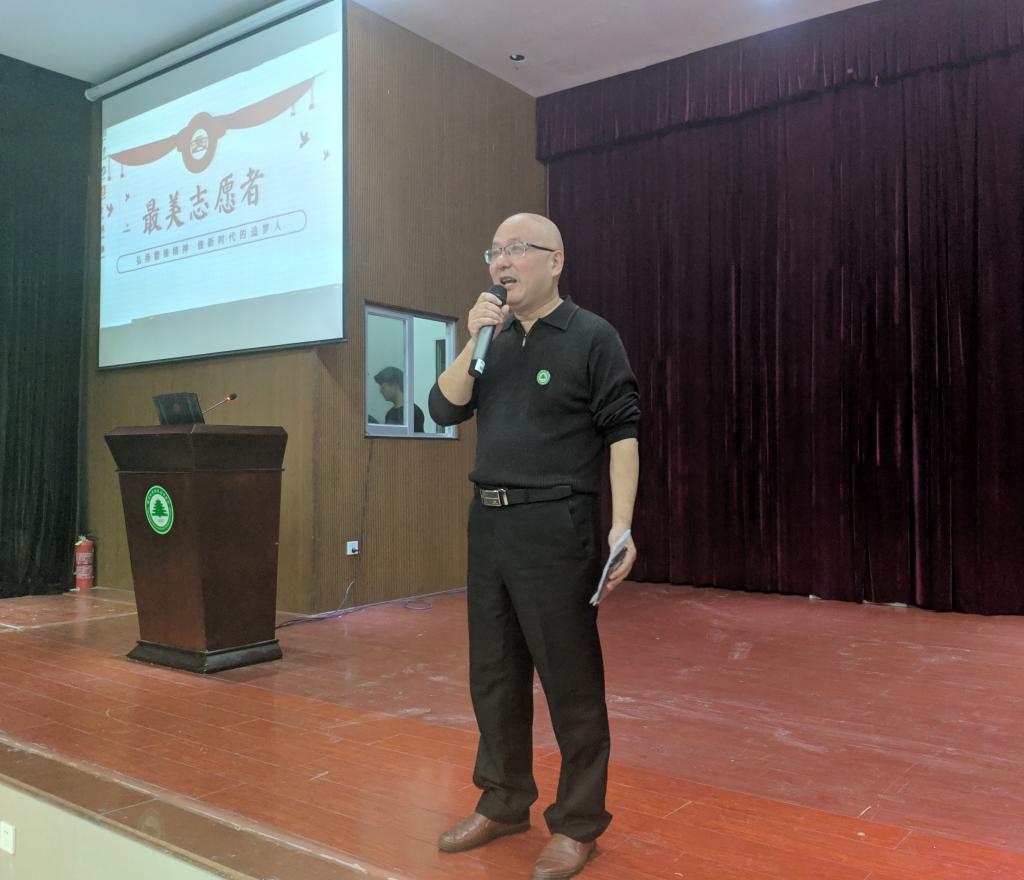 比赛结束后,系党总支书记王云彪对各比赛选手的演讲表现进行细致到位的点评,阐述了志愿者服务活动的重要意义,强调投身志愿服务活动的价值,鼓励同学参加志愿服务活动,培养社会实践能力,并带领全场人员演唱《爱的奉献》,将本次“最美志愿者”演讲比赛活动推向了高潮。