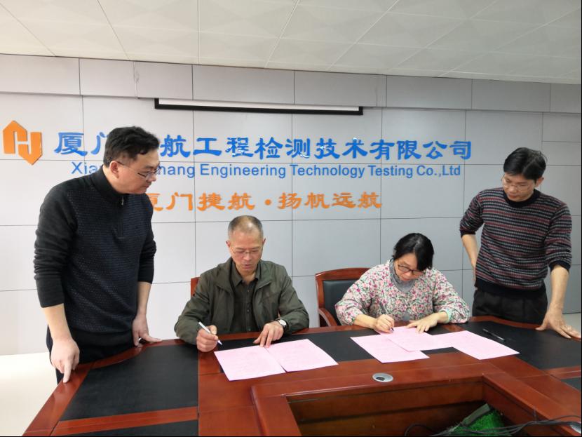 2019年3月18日上午,建筑工程系主任郑金兴率副主任彭忠伟、建筑教研室主任廖坤阳、专业教师张李平、林乙玄、专职辅导员温全军等人赴厦门捷航工程检测技术有限公司开展考察交流活动并与对方签订了校企合作协议。