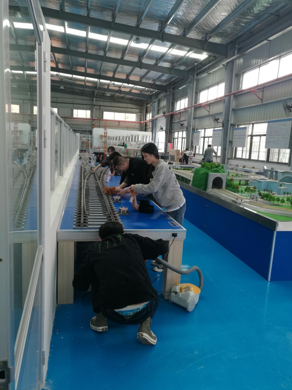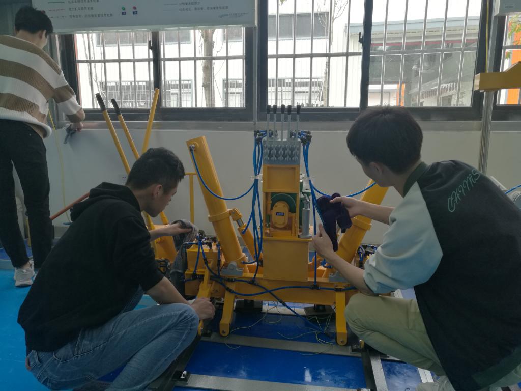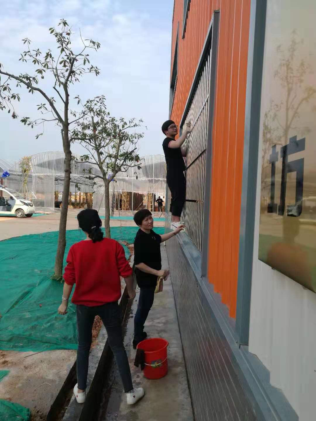 党总支书记孙华首先对在场的党员同志们进行分工和部署,并提出了清理的要求,强调大家注意安全,认真清扫。在明确了区域划分和任务之后,大家迅速投入到清扫当中。党员同志们脱了外套,挽起袖子,有的拿起桶来接水擦玻璃、抹桌子,有的拿起扫把打扫尘土和垃圾,有的抡起拖把拖地面,有的合力摆放仪器……亮洁的玻璃映出党员们通红的笑脸,干净的地面让实训馆更加亮堂。党员们不顾脸颊的汗水及身体的疲惫,团结协作,有条不紊,使整个实训馆焕然一新。