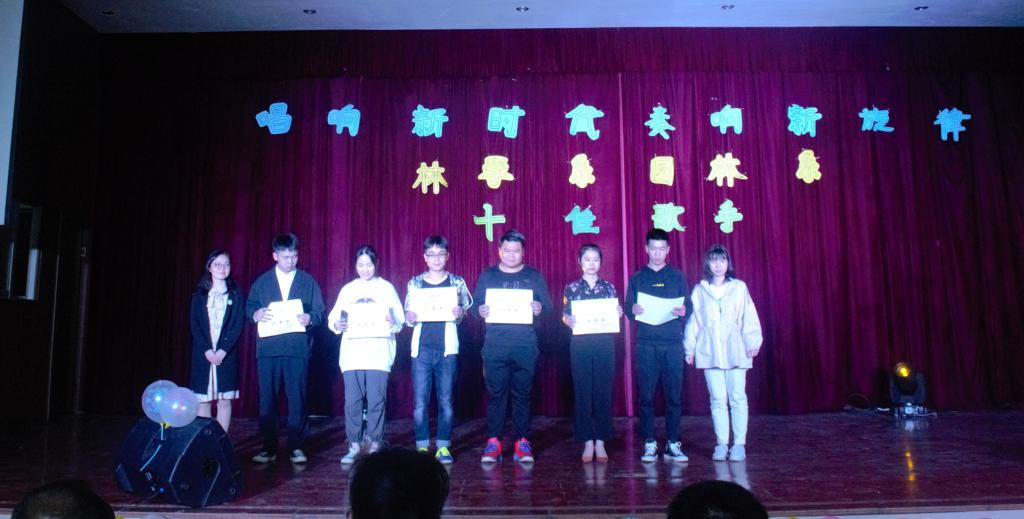 声嘹亮,音符飘扬,青春激荡,梦想起航。2019年3月19日星期二19点整由林学系和园林系联合举办的十佳歌手比赛在江南礼堂隆重开幕,大赛特邀林学系廖建国主任、团总支负责人吴慧敏老师、专职辅导员马艳红老师,园林系党总支副书记陈剑勇老师、团总支负责人孙钰老师、专职辅导员吴锦鸿老师,特别来宾:人事处陈莉老师担任评委。本次十佳歌手比赛旨在带动校园文化的提高,提高学生的的艺术风采,展示艺术修养,丰富课后生活。