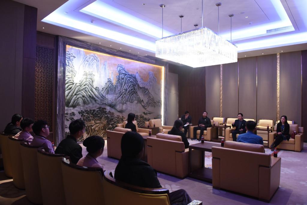 顶岗实习是学院人才培养的重要举措,在与雅阁大酒店人事部李经理的谈话中我们了解到学生近几个月的实习情况,并切实了解和关怀同学们在工作中的成长和困惑,9名同学积极发言,介绍各自的岗位责任和业务能力情况,分析自身的不足和需要改进的地方,他们从事的有财务审计、大堂吧服务员、人事部助理、前厅礼宾等等岗位,尽管岗位不同,同学们互相学习交流,丰富自身阅历,也思考着自己的工作规划。