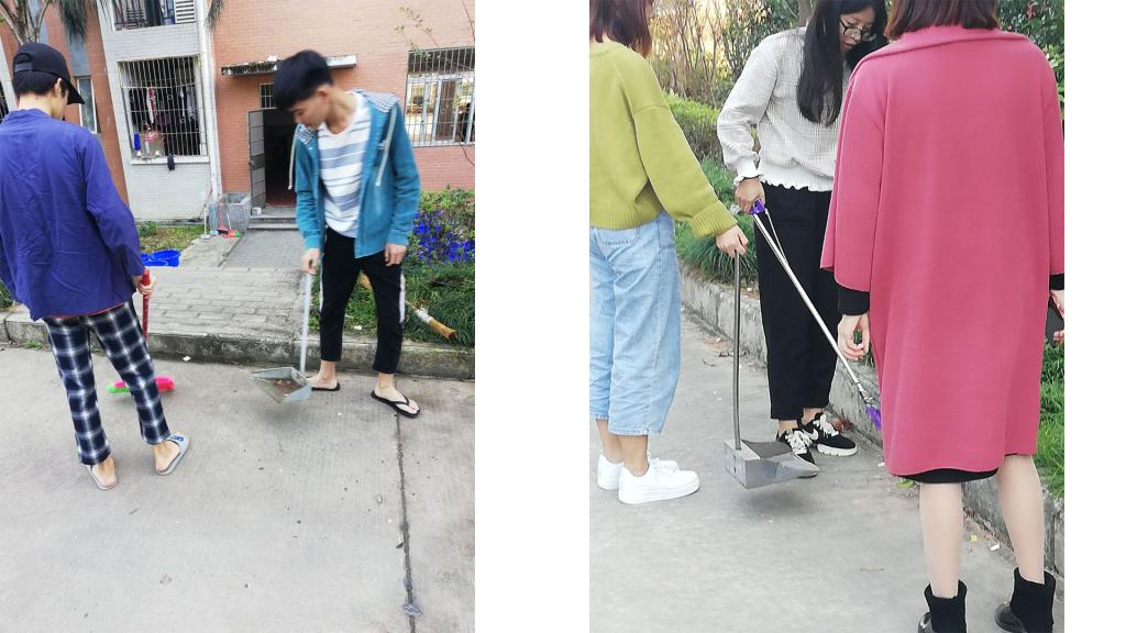所有志愿者到达集合点后,由志愿部负责做好签到工作,按照活动范围划分好队伍,并给志愿者分发了工具活动中,同学们打扫了学校的每一个角落,他们不怕脏,细心地将学校校园道路两旁果皮纸屑、烟头、食品袋等垃圾拾起扔入垃圾箱中,草丛中的落叶同样也被他们打扫干净。在清扫过程中,志愿者们发现了许多平时看不见的卫生死角,草坪或者是路边的小树丛,都暗藏着许多小垃圾,却因为位置隐蔽而被忽视,大家讶异于草丛里为何藏有这么多垃圾的同时,也在思考,正是因为有些人的环境意识不够高,才会造成这些垃圾的出现。
