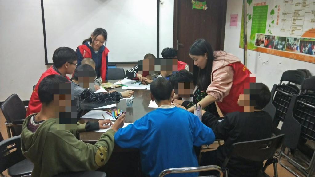 清晨,同学们闻着桂花的清香,带着服务他人的精神,踏上欢快的步伐,前往福利院。此次我们的活动是“我是小画家”每一个孩子都有自己独一无二的一面在绘画活动中也是如此,孩子们在活动中通过手、脑、眼和谐统一,来发现自我、展现自我、实现自我价值。绘画活动则是最常见,最基本的,也是孩子最喜欢的一种艺术表现形式。青年志愿者们,带领着孩子们绘画,遨游在知识的海洋里。他们的耐心,让福利院的孩子们感受到了爱,温暖。这便是爱的诠释,和谐的基础。