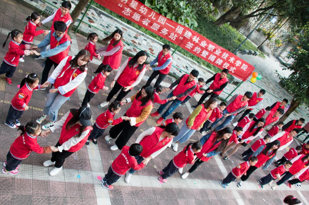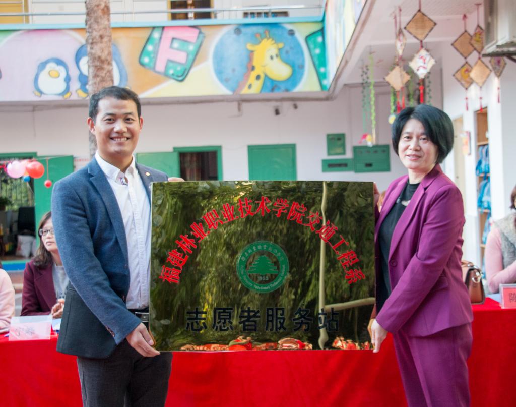 2018年11月29日下午,福建林业职业技术学院的师生一行30名党员来到紫云街道小明星幼儿园,为共建志愿者服务站开展签约授牌仪式。