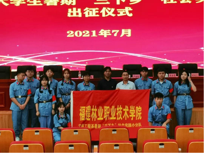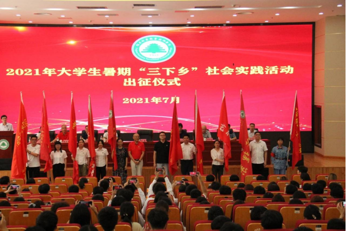 7月5日下午,学院2021年暑期“三下乡”社会实践活动出征仪式在江南校区图书馆报告厅隆重举行,院党委书记万泉为我系“扬延平荣光、传百年星火”暑期“三下乡”社会实践小分队授旗,并宣布2021年大学生暑期“三下乡”社会实践活动出征。