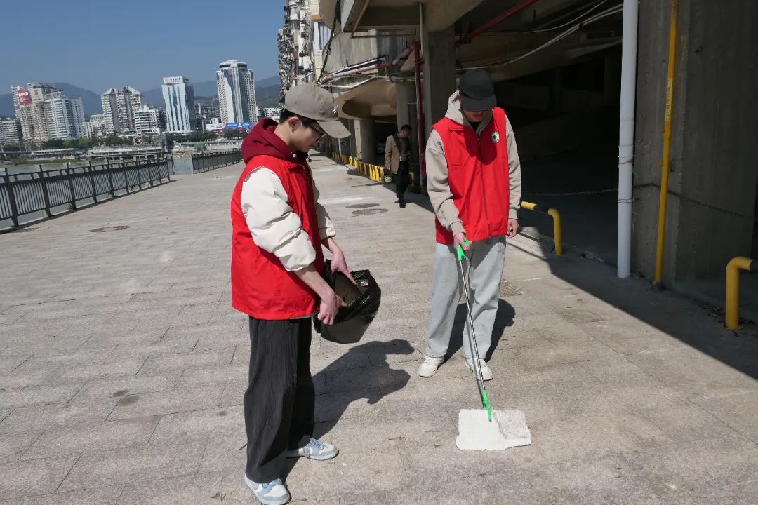 启动仪式结束后,“河小禹”志愿服务队沿闽江水东街道玉屏社区段开展巡河活动。春阳下的他们自成风景——“河小禹”们手持垃圾夹、环保袋,沿着河道细致清理烟头、塑料瓶等污染物。队员们发扬"不怕脏、不怕累"的雷锋精神,用脚步丈量责任,让我们的母亲河焕发新颜。汗水浸透的后背,恰似雷锋日记里“愿做高山岩石之松”的生动写照。