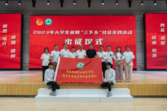 青春心向党,启航三下乡。2023年6月30日下午15:00,福建林业职业技术学院2023年暑期“三下乡”社会实践活动出征仪式在江南校区体育馆礼堂隆重举行。院党委书记万泉、院党委副书记严绍裕、院党委委员、宣传部部长邹小燕、学生工作部部长蔡敏、招生就业处处长王云彪、安全保卫处处长胡宗焕及各系(马院)党总支书记、副书记、各系团总支书记、2023年暑期社会实践小分队带队老师及成员、团员青年代表等近500人出席本次活动。本次大会由院团委副书记雷栩艺主持。
