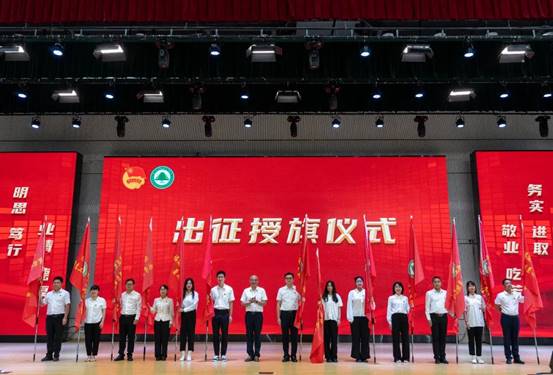 院党委书记万泉为15支2023年暑期“三下乡”社会实践小分队15授旗。