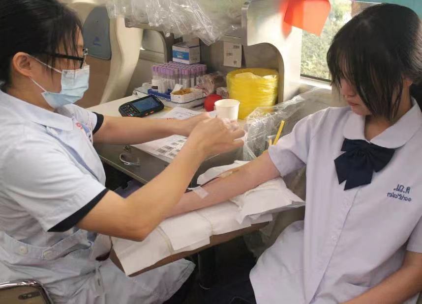 在献血区,前来献血的同学们纷纷献出自己的青春热血。尽管在献血的过程中有一些害怕,但更多的是因能帮助到需要的人而感到高兴。