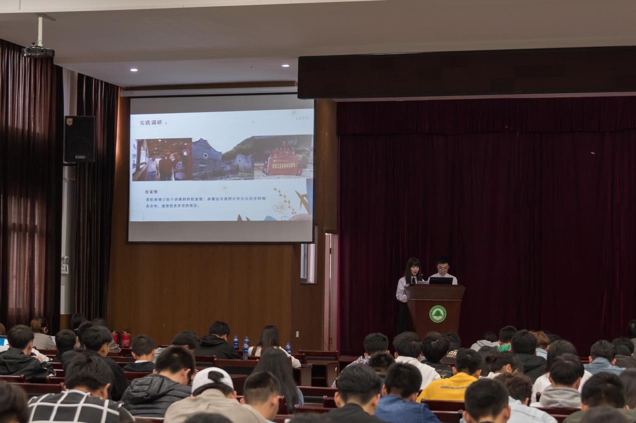 陆鑫同学与何松同学通过PPT图片与数据表格等丰富内容,从建筑的变化,将赤溪村这40年来的光辉巨变娓娓道来:从茅草小屋到玻璃小楼,从原来的贫困山区到现在的徽派建筑林立,无一不展现出改革开放带来的巨大魅力。