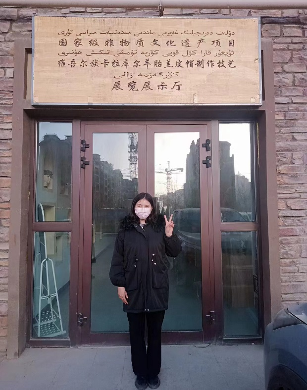 2023年2月5日,我慕名来到了新疆维吾尔自治区阿克苏地区沙雅县国家级非物质文化遗产项目维吾尔族卡拉库尔羊胎羔皮帽制作技艺展览展示厅,由于非遗文化传承人身体原因不便与他合影留念,但采访的时候他跟我说的话语“要对未来充满期待,不忘初心砥砺前行”让我久久不能忘怀。这次社会实践是关于探寻中华文化,领略非遗之美,在了解非遗之美的同时,我也深刻的体会到为了传承非遗技术,那些传承人都非常努力的做好自己能做的事情,脚踏实地的走好每一步。