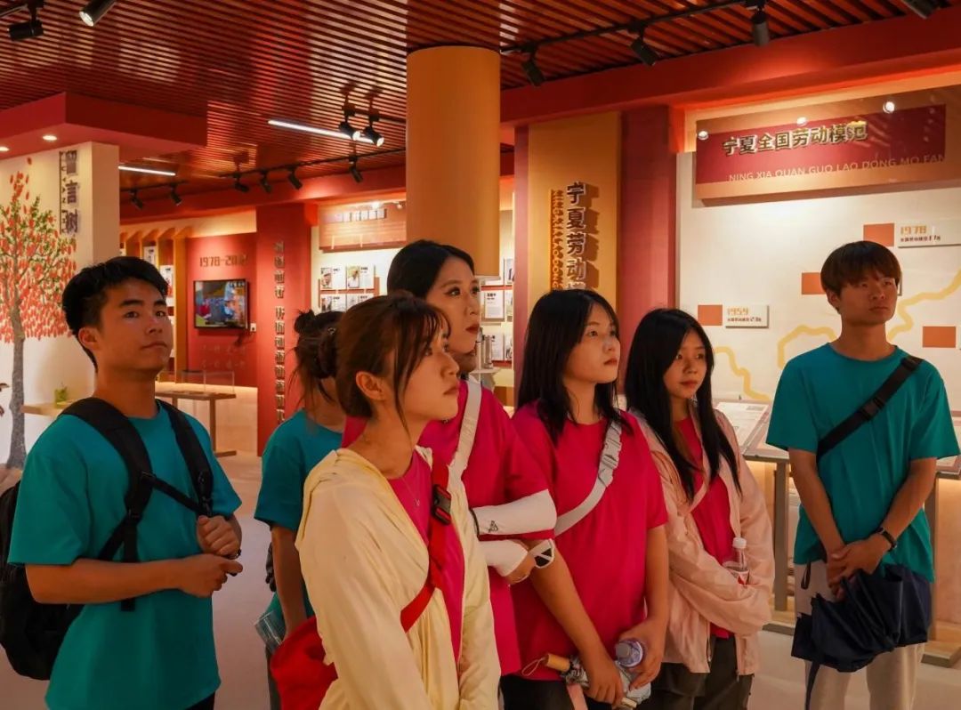 7月12日,实践队员们来到宁夏沙漠绿化与沙产业基金会、马鞍山区域生态治理成果和劳模精神教育基地以及劳模精神展示厅,探寻荒漠变绿洲的奥秘,倾听劳模王有德的奋斗故事。
