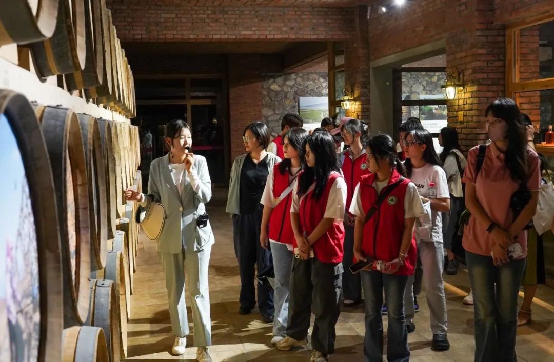 7月13日上午,实践队员们来到银川市西夏区志辉源石酒庄、闽宁镇的贺兰红酒庄。通过实地参观、聆听介绍、亲自品尝等形式,实践队员们熟悉了葡萄酒的制作工艺,实地重温了习近平总书记大力发展葡萄酒产业的重要指示精神,聆听了用“紫色经济”助推乡村振兴的奋斗故事。