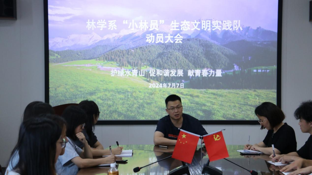 林学系于2024年7月7日下午在林学楼会议室召开2024年福建林业职业技术学院林学系暑期“三下乡”社会实践动员大会。林学系党总支书记傅成杰、林学系学生科科长兼团总支书记马艳红,林学系辅导员杨靖、林学系辅导员郑立娜,林学系“小林员”生态文明实践队队员参会。
