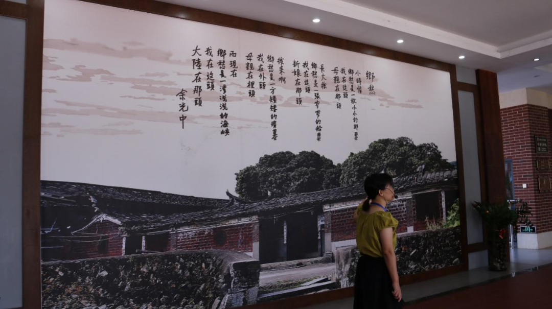 同学们进入余光中文学馆,映入眼帘的是余光中先生创作于1972年的经典诗歌《乡愁》,表达了诗人在漫长的生活历程中,对祖国的怀念之情,流露出诗人对家乡深深的眷恋。馆内陈列着余光中先生的手稿、书籍和珍贵的文学资料,每一处都透露着浓厚的文学气息。
