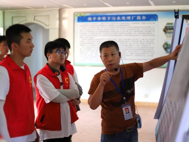 午后,实践团一行移步至南平市塔下污水处理厂,进一步探索水资源循环利用与环境保护新知。塔下污水处理厂厂长刘瑞贤及工程师们首先为实践团带来了一场污水处理的理论科普,让团队成员对这一领域有了初步的认识。随后他们带领实践团成员走进生化实验室,观察生活污水中的微生物,又带领大家深入污水处理现场,亲眼见证了生活污水从浑浊不堪到清澈透明的华丽蜕变。在这个过程中,成员们深刻理解了污水收集、处理及达标排放的复杂精细的工艺过程,以及这一环节在维护水环境健康、保障人民生活质量中起到的关键作用。通过实地考察与工作人员的耐心讲解,水资源保护与污水处理的必要性在每位同学心中都留下了深刻的烙印。