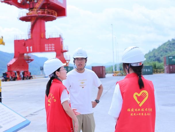 随后,实践团参观了延平区新城港区洋坑码头,深入了解“黄金水道”对推动闽江航运经济繁荣发展的重要作用。同学们还利用无人机进行码头及周边建筑设施的测绘、分析建筑与环境的关系、建立了洋坑码头全景VR,全方位、多角度地向大家展示洋坑码头。