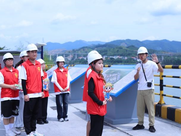 7月11日上午,实践团成员前往西芹镇沙溪口水电站调研学习,开启了一场关于绿色能源与生态保护的深度学习之旅。抵达水电站后,成员们首先共同观看了一部安全警示教育片,增强安全意识。紧接着,沙溪口水电站陈建柄经理携同经验丰富的工程师团队,为实践团成员讲解了水电站的日常运作机制。从水情测报系统的精准高效,到水调自动化系统的智能调控,再到洪水调度预警的迅速响应,每一个环节都展现了现代水电技术的先进与严谨。尤其是在应对台风与强降雨等极端天气时,电站如何确保安全稳定运行,并对上下游生态环境实施有效保护,这让同学们深感震撼,也让他们对水电站所肩负的“绿色”使命有了更为深刻的理解。