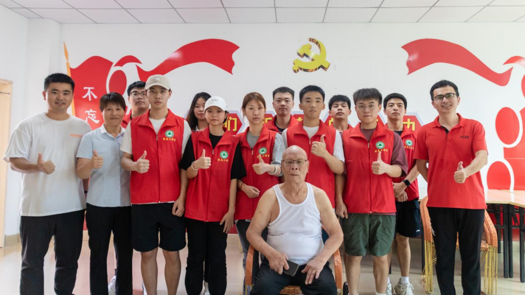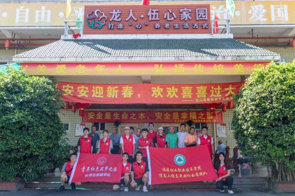 长青实践队在龙人·伍心家园养老院前合影