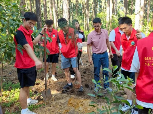 “长青”实践小分队在参观完谷文昌纪念馆后前往东山县赤山国有林场,践行弘扬谷文昌精神,深刻领悟谷文昌植树精神和背后感人故事。在赤山国有林场工作人员指导下,一起挥锹铲土、扶树填坑、踏土夯苗、提桶浇水,大家干劲十足、分工协作、配合默契,认真细致地完成每一道工序,精心种下一棵棵木麻黄树苗,用双手感受谷书记当年带领东山人民绿化全岛的艰辛,用实际行动践行谷文昌精神。