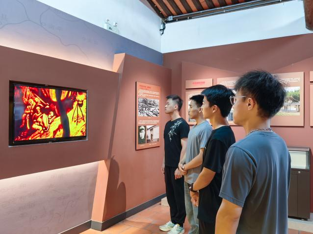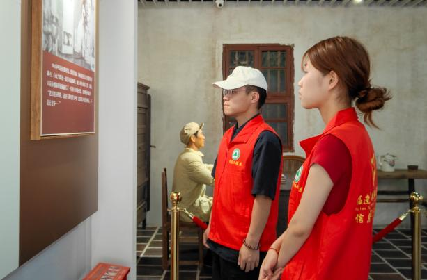 在旧址一楼的展览室里,实践队员们跟随讲解员老师的步伐,被众多珍贵文物和历史照片深深吸引。这些无声的展品,如同一本本打开的史书,静静地诉说着那段艰苦卓绝的岁月。泛黄的照片和文物,不仅是历史的见证,更是革命精神的传承。