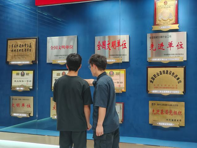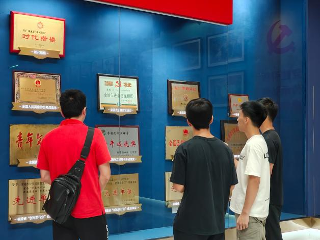 “长青”实践小分队深入了解了中国女排从成立之初的艰辛,到如今的辉煌成就,每一个阶段都充满了挑战与奋斗。参观过程中大家不时驻足凝视,交流心得体会。一幅幅照片、一段段史实,记录着女排姑娘们艰苦训练的场景;展柜里陈列的奖杯和奖章,见证了她们一次次站上世界巅峰的荣耀;而那些褪色的球衣和球鞋,更是诉说着她们无数个日夜奋斗的故事。在馆内陈列的历史实物的感染下,实践小分队成员们仿佛亲身经历了那些激动人心的时刻,感受到了女排姑娘们不畏强敌、勇往直前的精神风貌。
