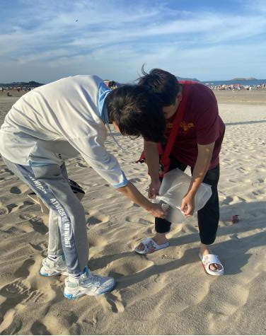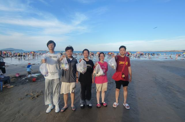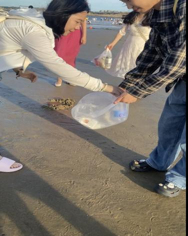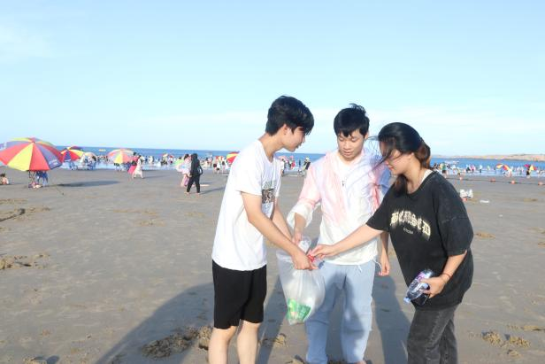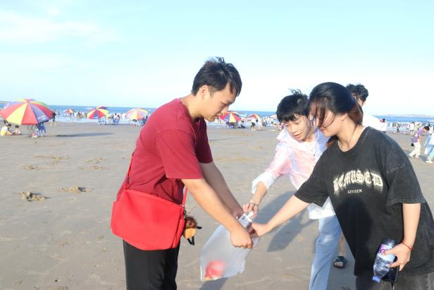 随着“三下乡”社会实践活动的深入,同学们来到了本次行程的最后一站--龙王头沙滩。作为福建省著名的海滩旅游胜地,龙王头沙滩以其优美的自然风光和丰富的旅游资源吸引了大量游客和当地居民。然而,随着人流量的增加,沙滩上的垃圾问题也日益突出。正如习近平总书记所说:“破坏资源就是自己挖自己的墙角。”面对这一环保挑战,同学们毫不犹豫地自发投入到了净滩志愿活动中。他们手持垃圾袋、夹子等工具,沿着沙滩仔细捡拾着各种垃圾,包括塑料袋、饮料瓶、烟蒂等。在炎热的阳光下,同学们不畏辛劳,齐心协力地清理着沙滩上的垃圾。