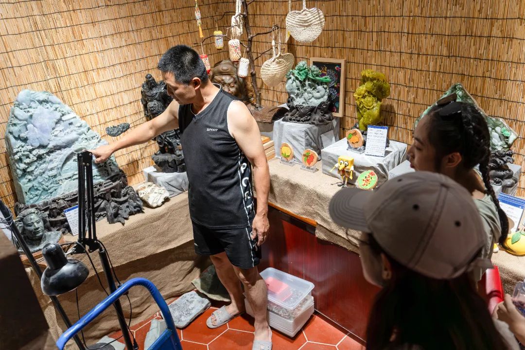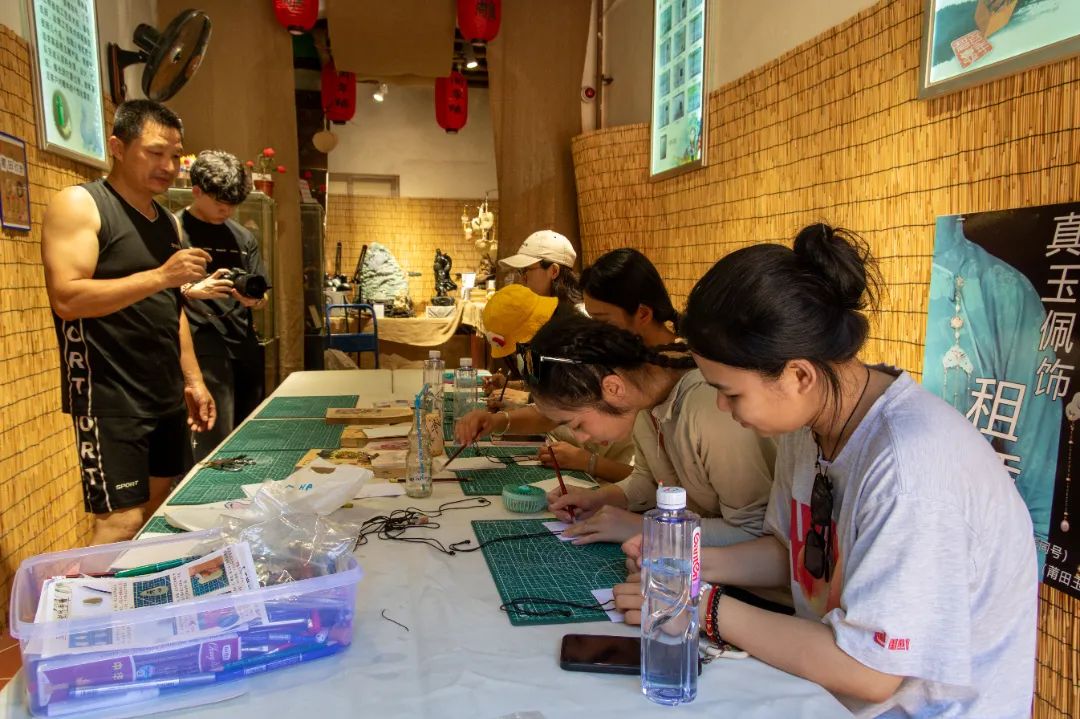 小分队寻访到莆田玉雕非遗传承人、省工艺美术师、国家一级(高级)雕刻技师徐建辉。同学们通过实践的方式现场了解、体验莆田玉雕的制作过程,深入探索莆田非遗文化魅力。“莆田玉雕和莆田木雕相辅相成,形成独特的以结构立传、层次分明、疏密相衬的艺术风格。”徐建辉在接受小分队采访时向同学们介绍道,为了传承玉雕技艺,他在多所学校开设玉石雕刻专业课程,形成教、研、创立体化的产业实训基地,平时也在进行新媒体直播,通过数字化模式,进行电商运营,致力于非遗文化传承与发展。