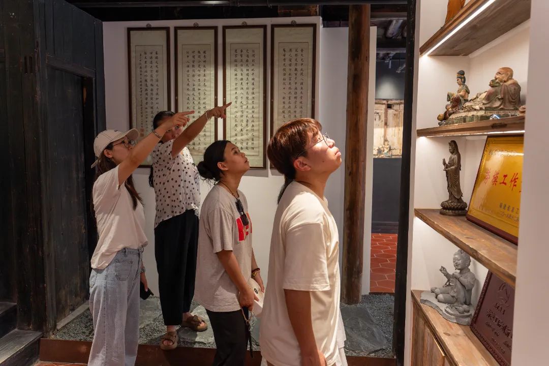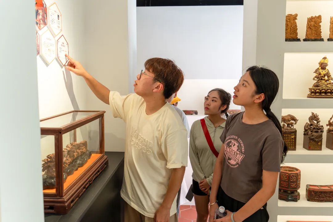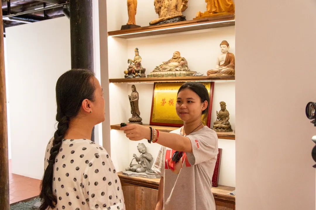 与莆田玉雕有异曲同工之妙的还有莆田泥塑和莆田木雕,在部级劳动模范、福建省级非物质文化遗产项目神佛泥塑和莆田传统木雕技艺的代表性传承人吴文忠的劳模工作室,同学们观赏吴文忠大师技艺精湛的手工艺品,了解到吴文忠打破传统壁垒,着手建立传统工艺保护体系,与职业院校合作,联办彩绘、泥塑培训基地,并应邀到全国各地参展、授课,借机将这一传统技艺推向全国,同学们纷纷赞叹不已。福建林业职业技术学院新闻2301班的郑欣妮同学表示,“非遗传承人的初心就是让传统的非遗技艺得到传承,并进一步发扬光大。此次社会实践,我们用手中的镜头,记录非遗故事,用实践感悟,和非遗传承人们一起成为莆田非遗的参与者与传播者,让更多的人看到了各地中华传统文化的魅力,为助力非遗传承贡献了我们的青春力量。”