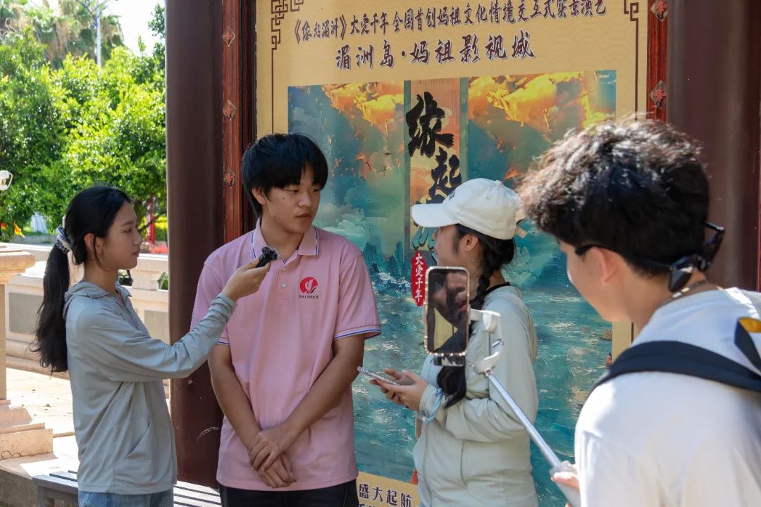 在妈祖文化的发祥地湄洲岛,小分队走进中国“海上丝绸之路中国史迹”申报世界文化遗产首批文物点探索人类非物质文化遗产项目、我国首个信俗类世界遗产——妈祖信俗。小分队成员化身“主播”,依托学院宣传部新媒体中心的专业优势,邀请妈祖信俗工作人员一起通过网络平台开启了一场国家级非物质文化遗产妈祖信俗公益直播。直播间里互动不断,一位粉丝说道“这个实践团太有意思了,妈祖信俗唤醒了我乡愁记忆”。观众通过网络直播的形式沉浸式体验妈祖文化这一中华优秀传统文化的瑰宝,深入了解妈祖文化的起源及妈祖信俗传承创新之道,领略妈祖文化等多彩非遗的独特韵味。