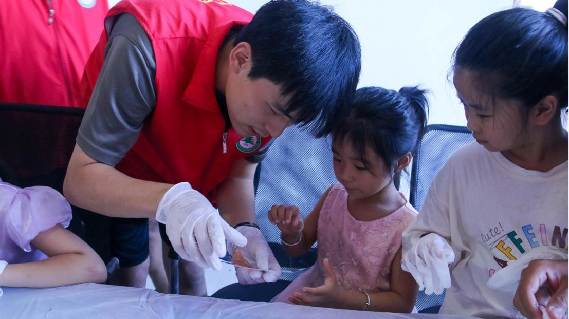 实践小队队员与当地小朋友一起制作生态瓶