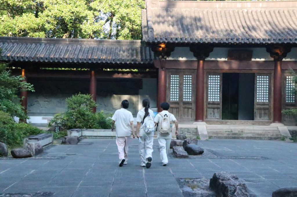 踏着兴贤古街的青石板路,队员们走进日常生活中的朱子文化。沿街的老店铺仍保留着“德懋堂”“辑和堂”等体现儒家伦理的匾额,居民们随口能说出“仁义礼智信”的故事,这种文化与生活的深度融合,让队员们深刻感受到:优秀传统文化并非束之高阁的古董,而是滋养世代人的精神养分。在兴贤书院,队员们细看“讲堂”“斋舍”等建筑布局,了解到这里曾是南宋理学传播的重要场所,朱熹、吕祖谦等学者曾在此讲学,见证了当年理学思想蔚然成风的繁荣景象。