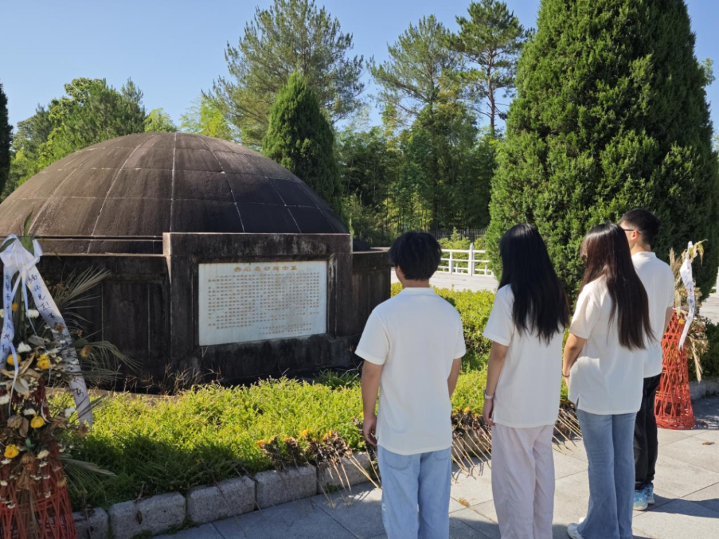 随后,队员们来到赤石暴动烈士陵园,在纪念碑前伫立默哀。苍松翠柏环绕下,“赤石暴动烈士永垂不朽”的碑文熠熠生辉。队员们在烈士名录前驻足,默念着一个个名字,深刻认识到:今天的和平生活来之不易,是无数先烈用热血换来的。
