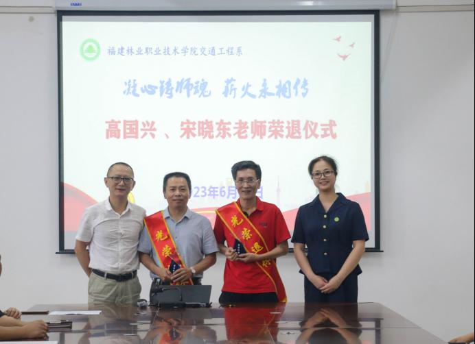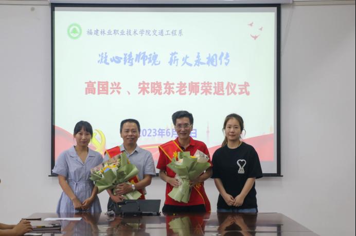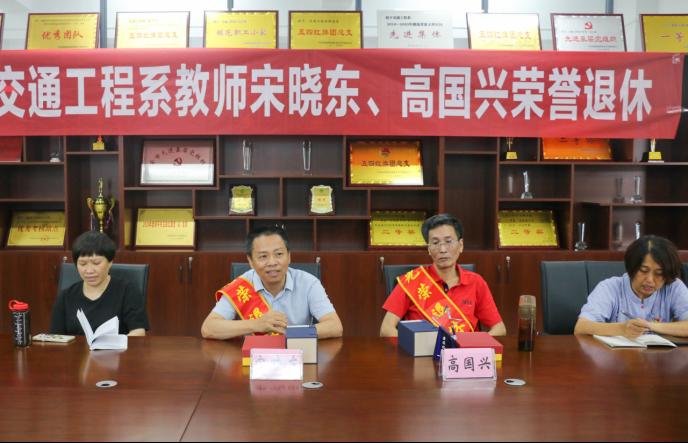 目之所及皆为回忆,心之所向皆是过往。为进一步弘扬尊师重教良好风尚,发挥老教师的榜样示范和引领作用,激励更多青年教师献身教育事业,6月29日,交通工程系隆重举行高国兴和宋晓东老师荣退仪式,学院党委委员、副院长谢金生、系党总支书记陈莉、主任孙华、副主任李林威、专职组织员黄雪媛、教务科科长陈毅勇、系学生科科长兼团总支书记李建文及全体教师参加活动,仪式由副主任李林威主持。