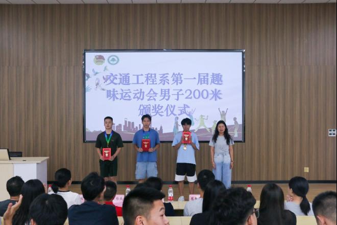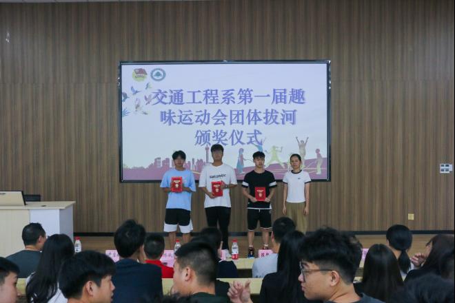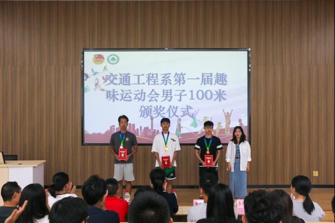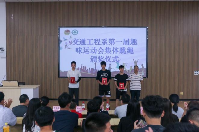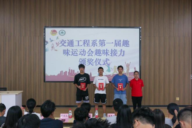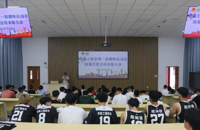 青春挥洒激情,运动焕发光彩;汗水浸湿衣衫,荣光披肩而上。交通工程系第一届趣味运动会已圆满落下帷幕,为表彰我院运动健儿在赛场上的精彩表现以及全体工作人员的辛苦付出。7月3日下午3时,交通工程系召开第一届趣味运动会闭幕式暨总结表彰大会,大会于江南校区阶梯教室(二)隆重举行。系党总支书记陈莉、副主任李林威、专职组织员黄雪媛、教务科科长陈毅勇、全体专职辅导员及学生代表、运动员代表参加本次大会,大会由系学生科科长兼团总支书记李建文主持。