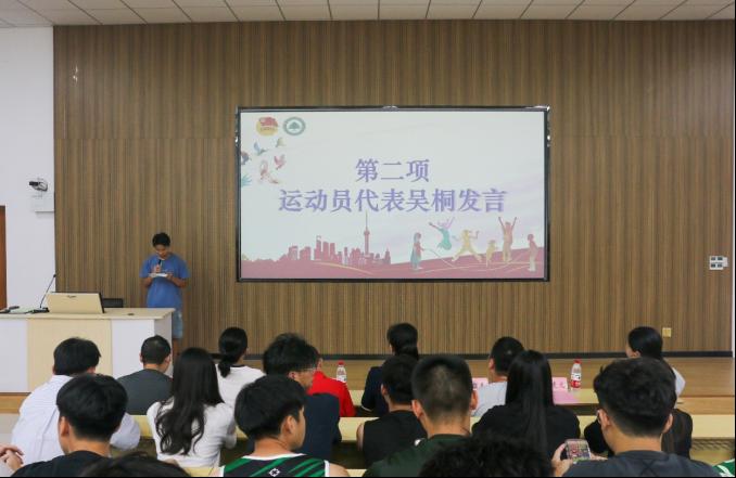 第二项议程,由系运动员代表吴桐发言。他表示体育不仅是一项运动,更是一种更高、更快、更强的精神;运动会不仅是竞技的赛场,更是充分展示自我的舞台。我们要在赛场上超越自我,永不言败,同时我们要把这种永不言败精神带到今后的工作、学习和生活中,向更远大的目标而努力奋斗。