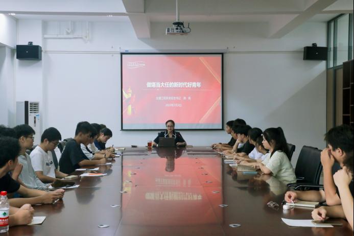一代人有一代人的梦想,一代青年有一代青年的历史际遇和使命。为深入学习习近平总书记关于青年成长成才的重要论述,进一步增强青年学生的使命感与责任感,引导学生争当新时代好青年,7月3日下午,交通工程系党总支书记陈莉在交通楼五楼会议室为所联系班级学生讲授《做堪当大任的新时代好青年》专题进座,专职辅导员韩嘉艺和道路与桥梁工程技术2202班全体学生参加。