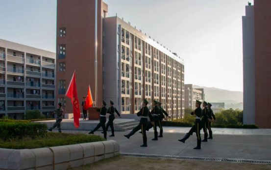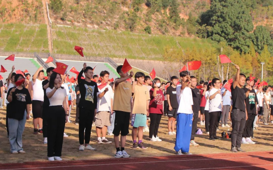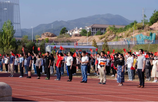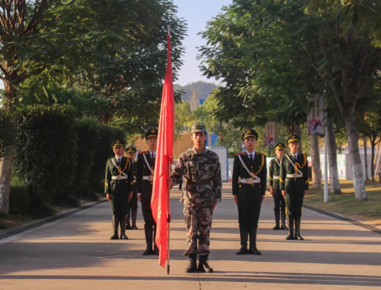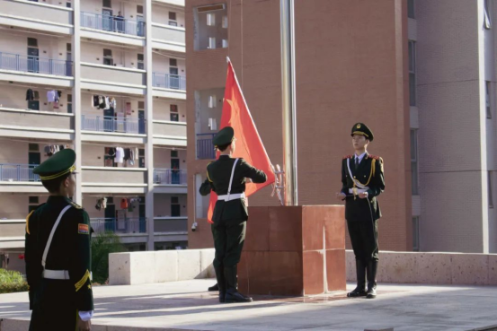 上午8时,国旗护卫队迈着整齐的步伐,护送国旗庄严地走向升旗台。随着雄壮豪迈的国歌响起,全体师生怀着无比激动的心情,庄严肃立、高唱国歌,向伟大祖国致以崇高的敬意与祝福。