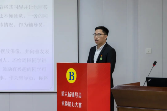 本次比赛共分为两个阶段。第一阶段为基础知识测试环节,主要考察选手的基础知识储备及其对基本理论的掌握程度。全体专职辅导员参加测试,遴选出10名辅导员进入决赛。