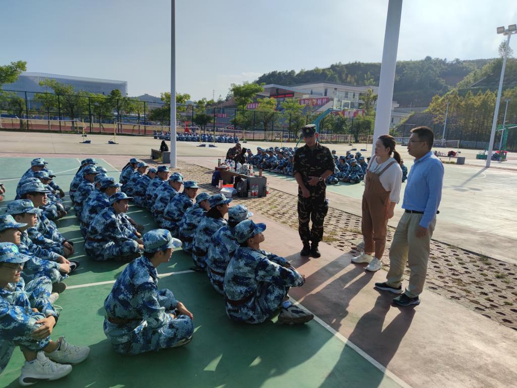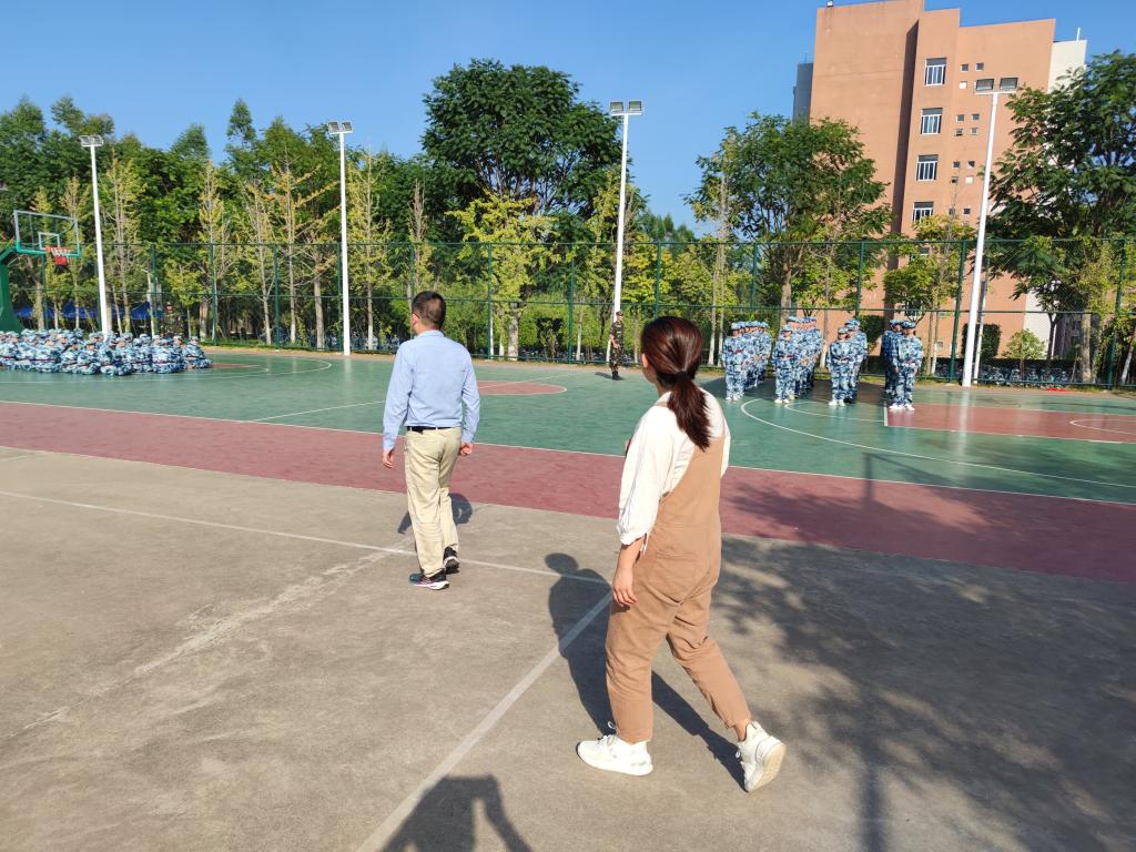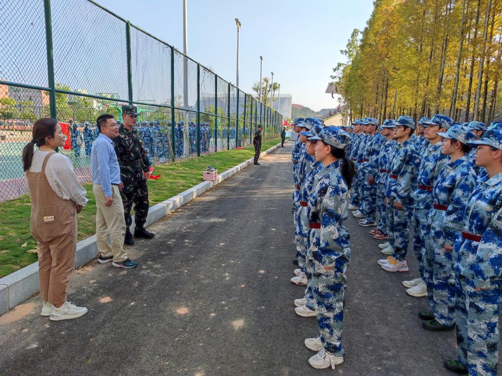 训练场上,队列训练井然有序,参训学生昂首挺胸、精神饱满,在训练场上挥洒汗水激情,绽放青春活力,磨练坚强毅力,成为秋日校园里一道别样的风景线,2022级新同学军容整齐、站姿挺拔、朝气蓬勃、士气高昂。每到一个连队,罗志斌书记勉励同学们通过军训掌握国防知识,提升自身素质,练出过硬思想、过硬纪律、过硬作风、过硬意志,为大学生活和人生旅途奠定坚实的基础,并对教官们辛勤付出表示衷心的感谢。