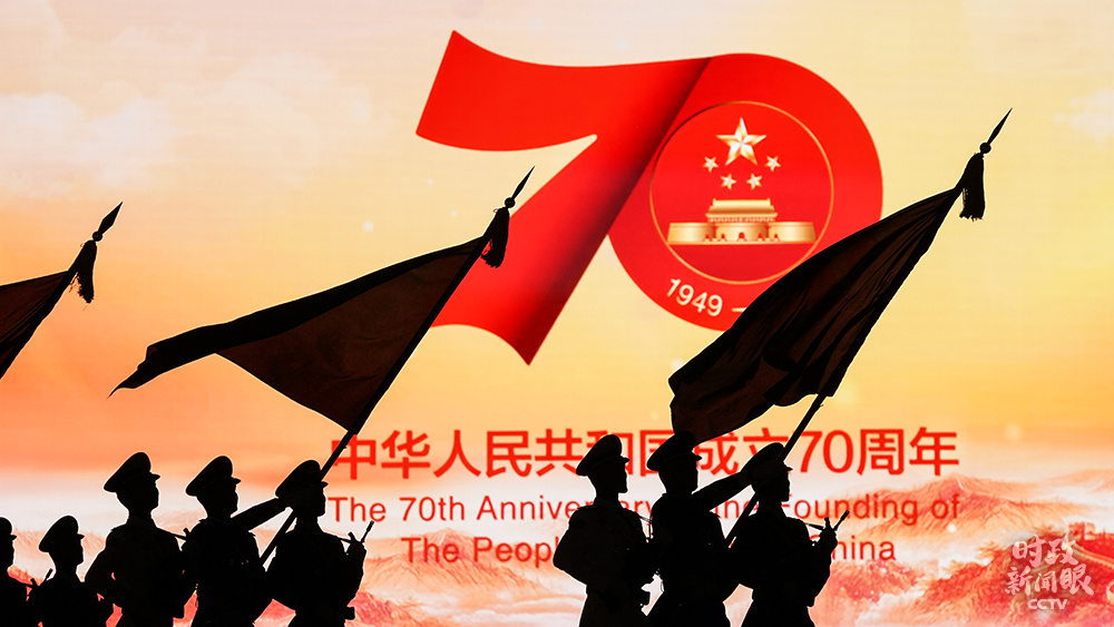 △2019年国庆当天,仪仗队走过天安门广场东侧的巨大荧屏。(总台国广记者李晋拍摄)
