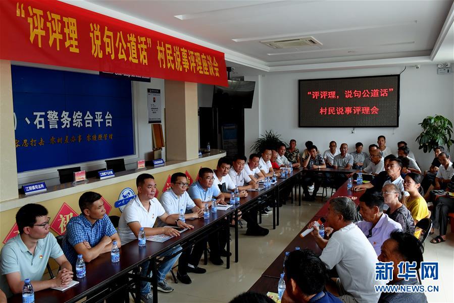 福建省福清市江阴镇下石村村民在村民说事评理会上与干部面对面交流(2019年7月9日摄)。新华社记者 张国俊 摄