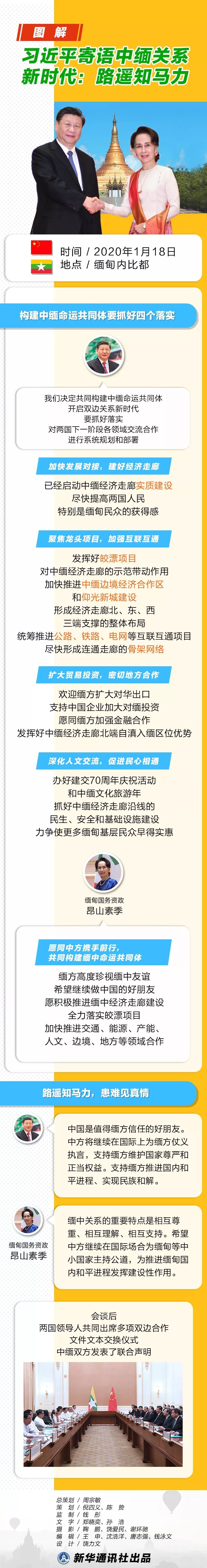 1月18日上午,国家主席习近平在内比都同缅甸国务资政昂山素季举行正式会谈。双方决定共同构建中缅命运共同体,开启双边关系新时代。习近平在会谈中强调,路遥知马力,患难见真情。
